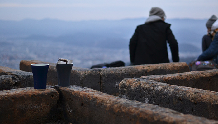 保温ポットに熱々のお湯を入れて、ドリップバッグと気に入りのカップを持って。