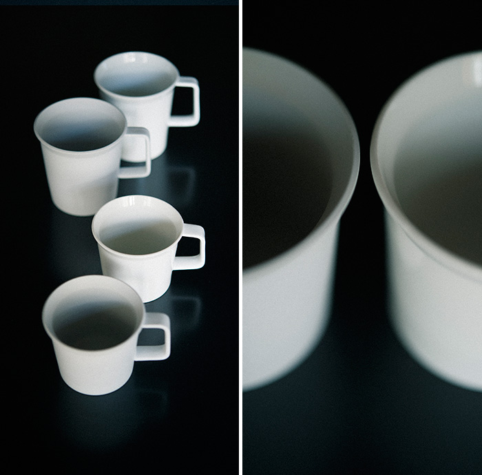 遥か昔、400年前に作られた道具としての器。その時代を想いながら柳原は、新たな素材を用い、多様な食生活を受け入れるシンプルな形状の陶磁器のシリーズを開発しました。用途を限定しないフレキシブルな形状でありながらも、非常に強度のある高密度の陶土を用いたライトグレーの器は、有田焼の持つ、華美ではない美しさが現代に引き継がれています。