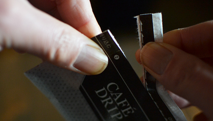 ドリップバッグをピリピリと開けた切れっ端!
