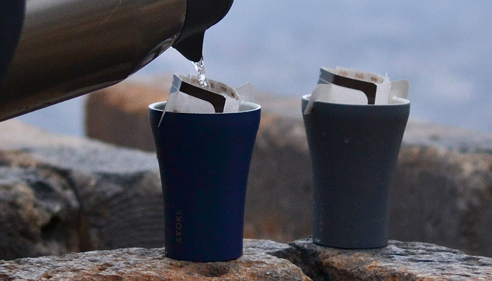 保温ポットに熱々のお湯を入れて、ドリップバッグと気に入りのカップを持って。